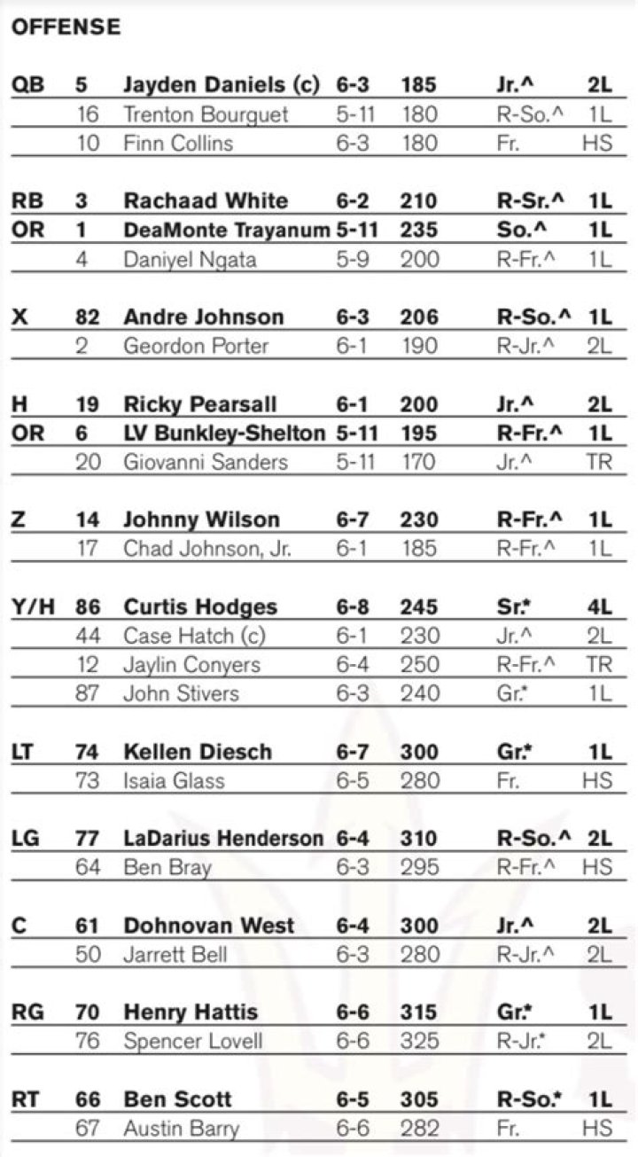 Arizona State Sun Devils Depth Chart 2023