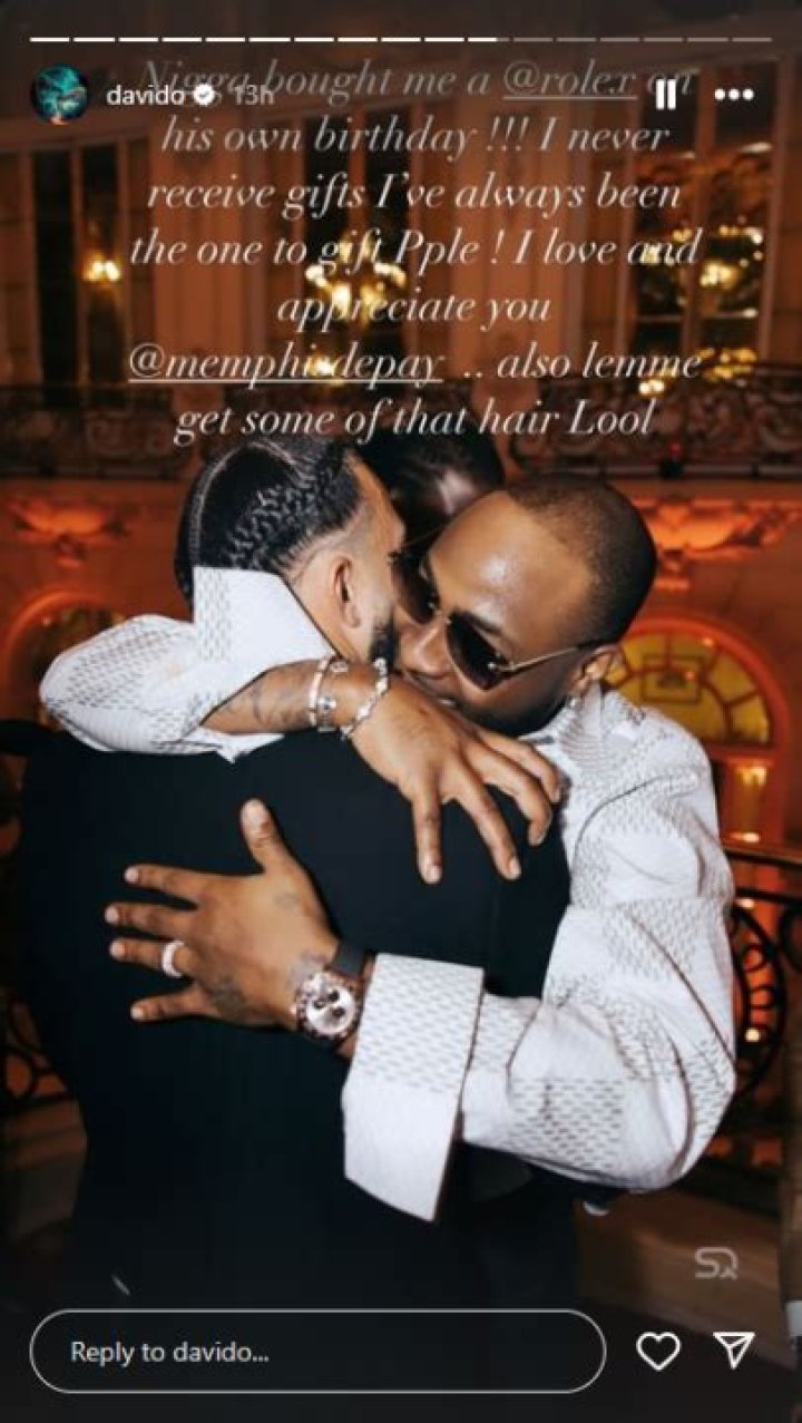 Reactions as Memphis Depay gifts Davido a Rolex
