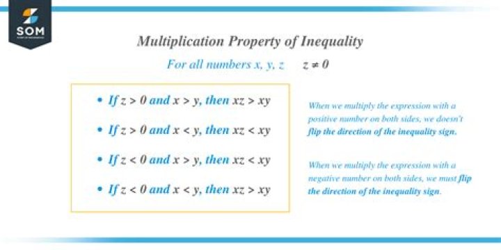 The Multiplication Property of Inequality states that for all real numbers a, b, and c, if a < b, then: ac < bcFor more math formulas, check out our Formula Dossier