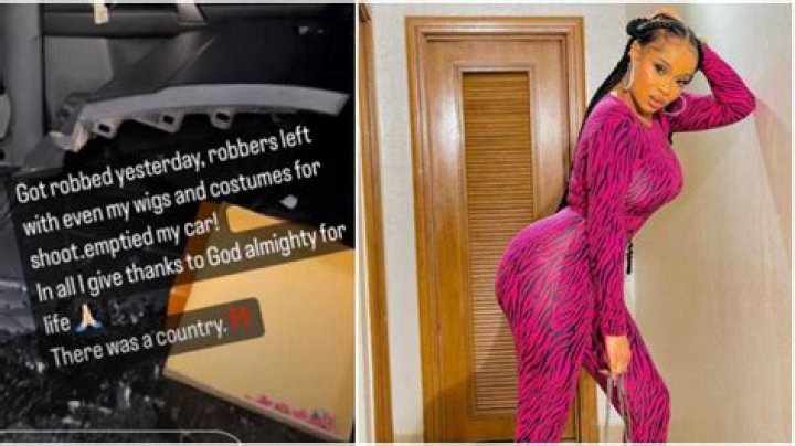 "Got robbed yesterday; the robbers left with my wigs and costumes for the shoot and emptied my car. In all, I give thanks to the Almighty for life."