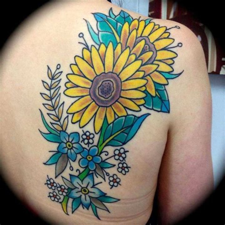 While a single sunflower is a suitable design, adding two or more flowers creates a significant effect. Feel free to vary the sizes of each bud to have more depth in a type of bouquet sunflowers tattoo.