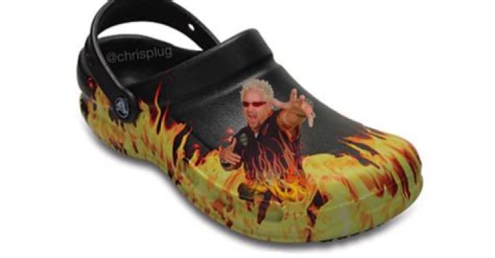 Twitter user Chris Plug decided to stir the pot a little more by throwing out a hypothetical. This is actually a good quiz for couples. How you respond to this question might determine your compatibility. Plug shared photos of a Croc shoe, but one emblazoned with a picture of TV chef and Times Square mainstay Guy Fieri. Also flames, just in case you didn't know these shoes were from hell. Then he asked the fellas what they'd do if they found these things in a box on Christmas morning.