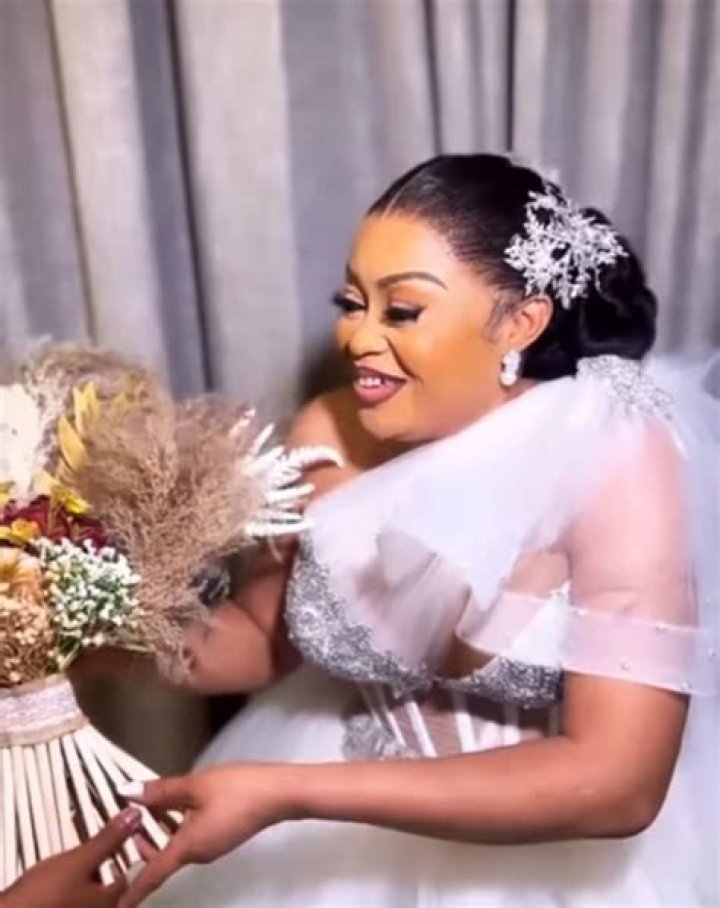 Popular Nigerian actress, Nkiru Sylvanus, recently dazzled her fans with new photos from her white wedding ceremony.
